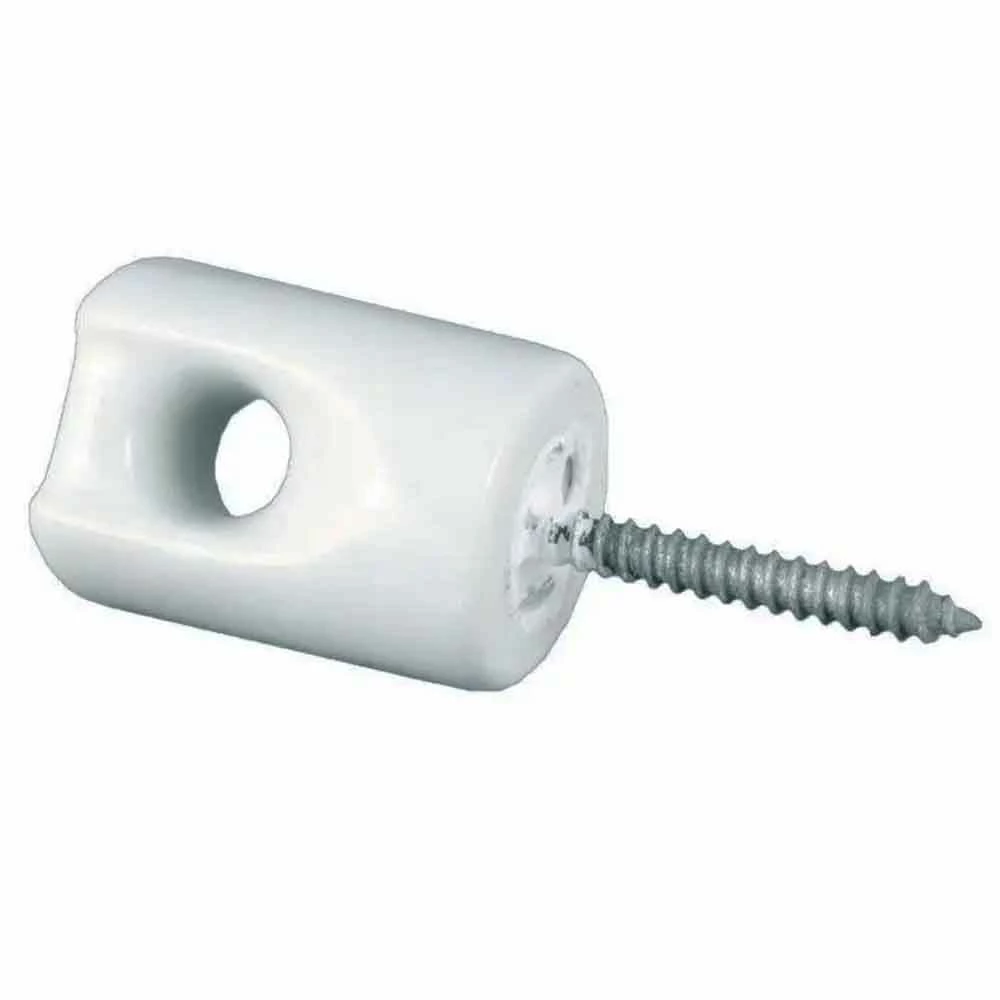 Prevent electrical shorts with the help of this Zareba® Small Ceramic Lag Screw Insulator. This lag screw insulator is made from durable ceramic and is designed to prevent electricity from flowing out of the fence into the post, ensuring that your electric fence operates at full capacity. Designed with durability and strength in mind, this lag screw insulator works with high tensile, polyrope and poly tape fence systems. Attach your fence wire to wooden posts with this small ceramic insulator. While wood itself is nonconductive, water does conduct electricity, and if your fence posts become damp or wet, energy from the fence may be transmitted into or through the post. Insulators help to prevent the loss of energy in this fashion. This ceramic lag screw insulator is suitable for use with traditional fence wire including high-tensile, polywire, polyrope, and 1/2 and 1 in. polytape. Simply screw the Zareba® Lag Screw into the fence and feed the wire through the ceramic head. The head acts as a barrier between the wood and the wire, preventing any possible transmission of electricity through the wood.